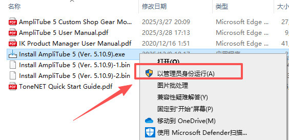 1、在本站下载并解压,右键“Install AmpliTube 5 (Ver. 5.10.9).exe”,以管理员身份运行;