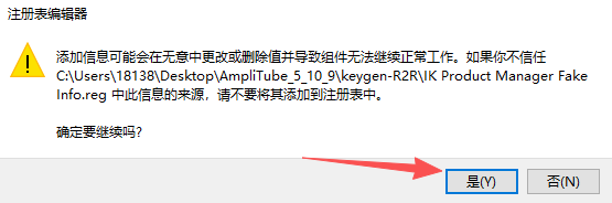 9、打开keygen-R2R文件夹,双击运行“IK Product Manager Fake Info.reg”,点击“是”;