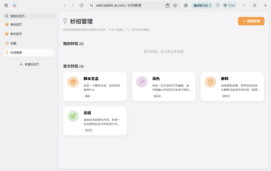 其次,当你在对话框提问的时候,还可以打开妙招管理功能中预制的 Skills 库,用户可以随时提问、解释和总结。