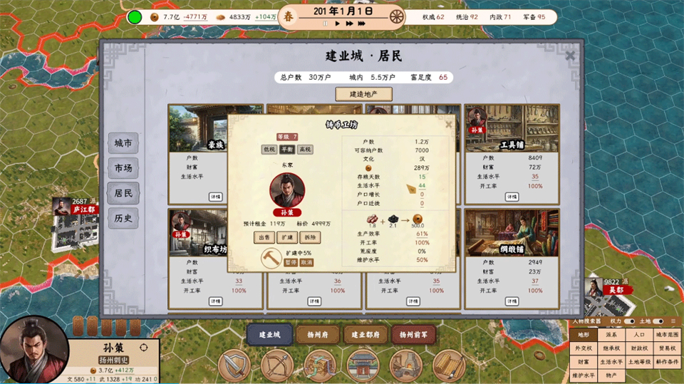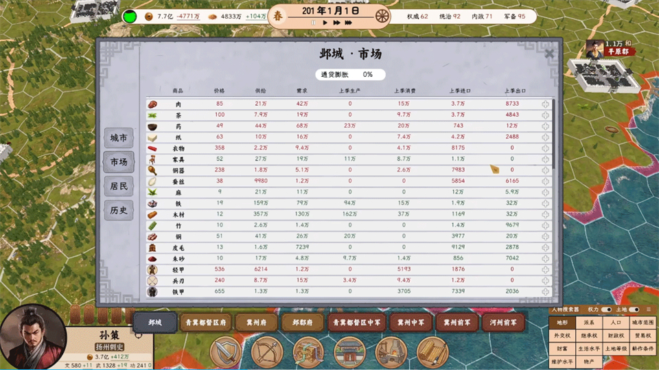 3、POP是这个沙盒世界的基石,所有的物资均由POP生产,税收、兵员也都来自于POP。