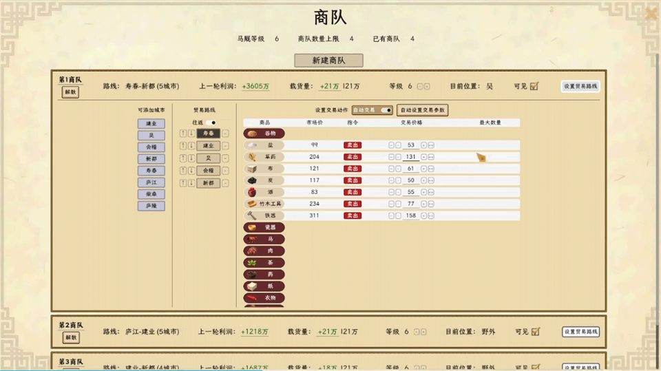 跨区域贸易:组建商队进行跨区域贸易,建立覆盖天下的商业网络